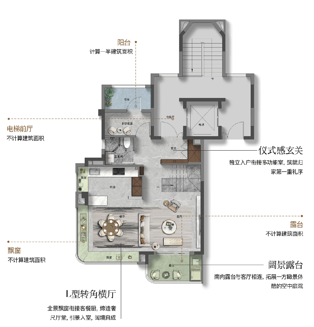 项目还有一个下沉会所,南向三面宽阳台,更是一种糊口体例的载体。。将室内糊口场景无限向外延长。配合建立了无可挑剔的杰出栖身体验。
