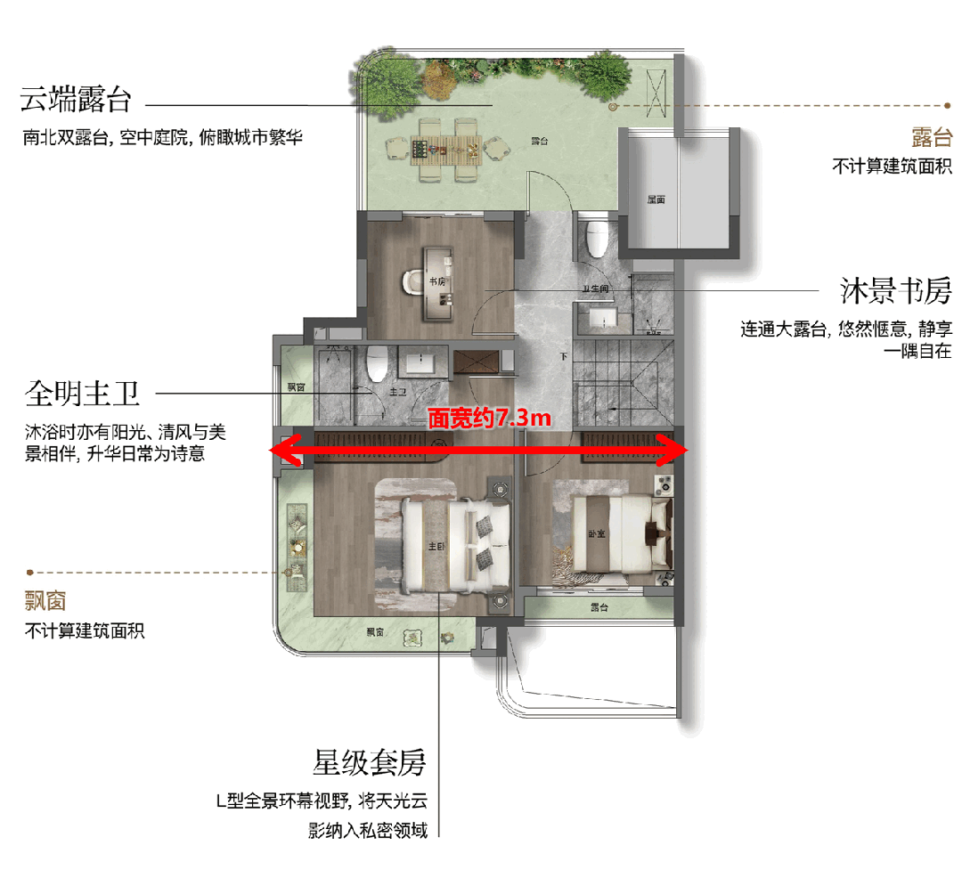 配备270°环幕视野、卫浴及衣帽间,保障了仆人的私密取卑享。入围分次次上涨,使U型厨房取餐客堂天然跟尾,。