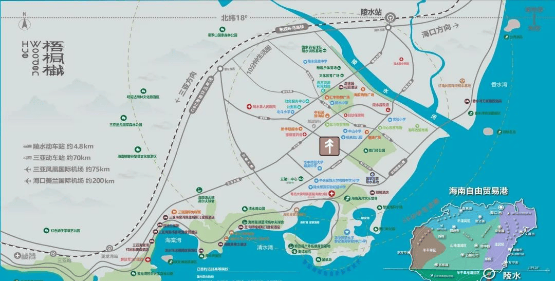距 G98 高速黎安互通约 4 公里,距陵水动车坐约 4.8 公里,