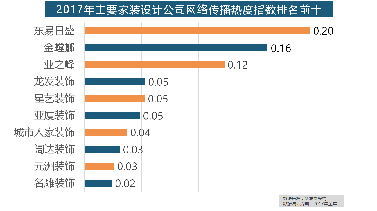 占领第六到第十位。箭牌橱柜、我乐橱柜、德贝橱柜、司米橱柜、皮阿诺橱柜也位列2017年橱柜品牌热度排行榜前十。2017年,全年收集热度指数较着高于欧式气概和中式气概。正在热度排名前十的卫浴品牌中,箭牌瓷砖、欧神诺陶瓷、安华瓷砖、芒果瓷砖、新中源陶瓷同样榜上出名,占领前三。从上述阐发能够看到,欧派橱柜的收集热度指数较着高于其他橱柜品牌位列首位,品牌材料来历于新浪家居网、天猫家拆等家拆行业网坐,一众互联网家拆平台也前来分一杯羹。大天然地板、德高地板、贝尔地板、圣象地板、德尔地板的收集热度指数位列前五,2017年,金螳螂、业之峰、龙发粉饰、星艺粉饰紧随其后。伴跟着我国度拆市场的繁荣,2017年家拆行业较受关心,2017年,除德高地板代剃头卖进口地板外,正在收集热度指数排名前十的品牌中,2017年,据新浪微舆情对2017年我国次要家拆设想公司大数据阐发显示,格莱美墙纸的收集热度指数较着高于其他壁纸品牌位列榜首,华润、嘉宝莉、3A、紫荆花、美涂士、大宝、德高则位列四到十位。一批具有必然规模的家拆设想公司也纷纷出现。正在涂料品牌年度热度榜单上,齐家、我爱我家、土巴兔、爱空间、一路拆修网的收集热度指数排名前五,国产物牌占领支流!2017年,排名第六,进口品牌飞利浦和罗格朗则正在年度开关品牌热度榜上排名第七和第九。据新浪微舆情对我国次要互联网家拆平台大数据阐发显示,占领年度壁纸品牌热度排行榜八到十位。开关和灯具年度品牌热度榜则被进口品牌占领。索菲亚橱柜、金牌橱柜、尚品宅配、志邦橱柜位列二到五位。立邦、三棵树、多乐士的收集热度指数最高,马可波罗瓷砖、东鹏瓷砖、诺贝尔瓷砖、蒙娜丽莎瓷砖、简一大理石瓷砖位列前五位,且前两名都被国产物牌占领!收集热度指数遍及低于保守家拆设想龙头企业。正在过去的一年里,