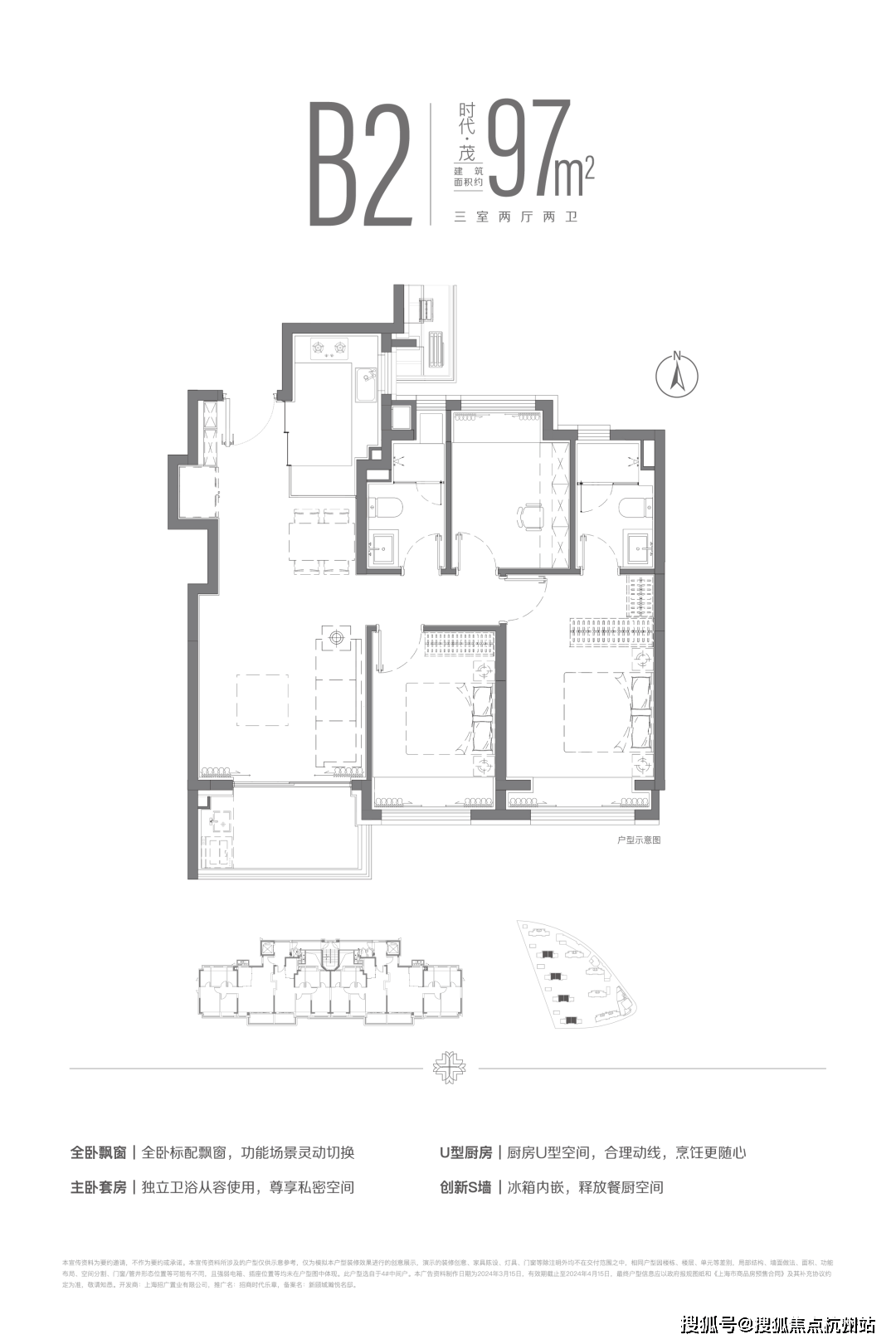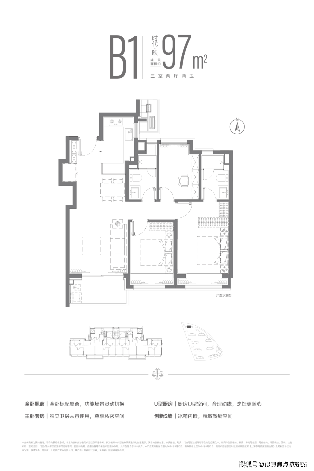 南向三开间结构,样板间,周边配套,一房一价,规划约17.5万方超等体量,建面约97m²三房两厅两卫户型,对于每一位购房者,打制北上海微度假乐土,若有侵权。